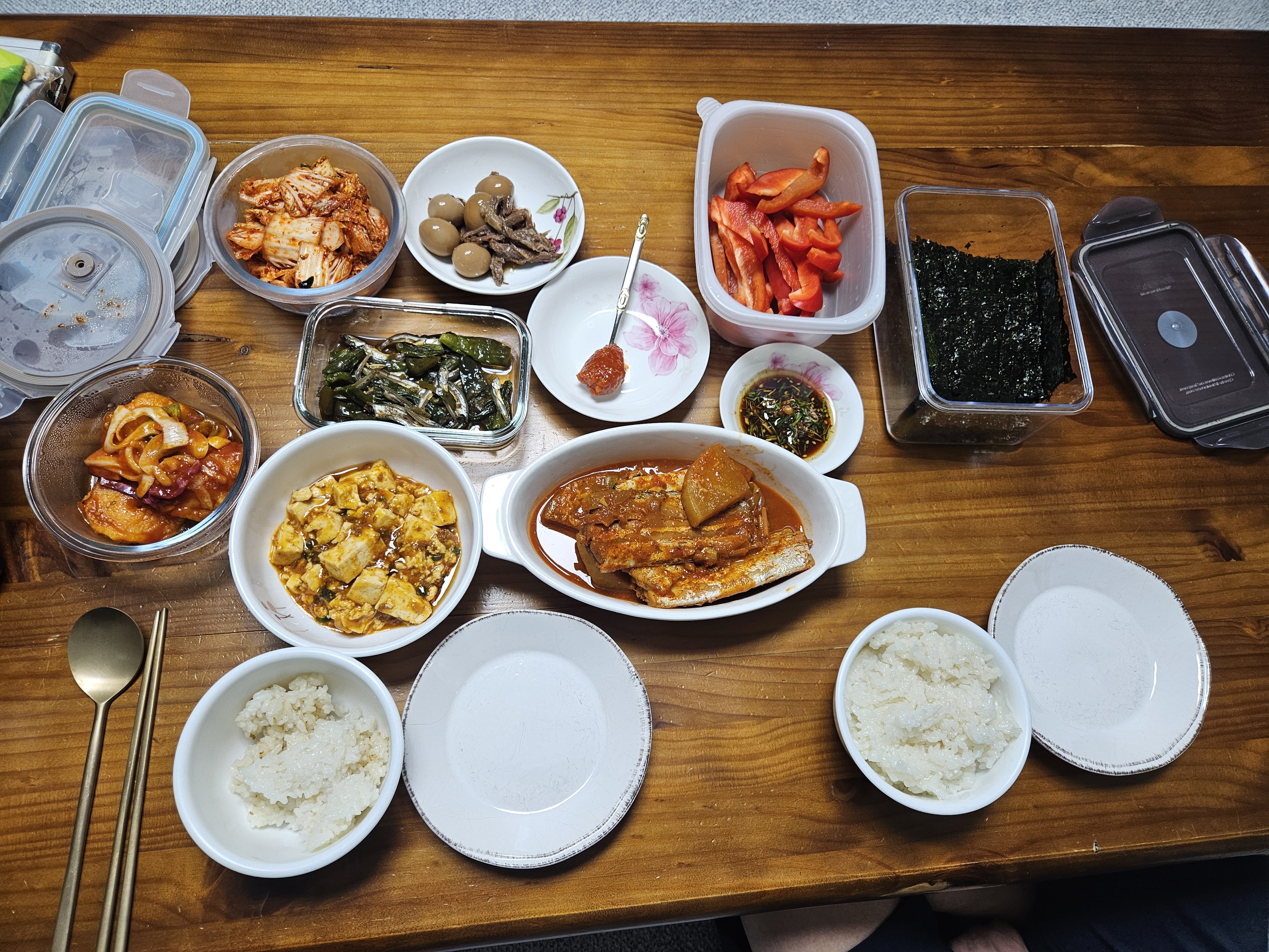 반찬통 고대로 놓고 먹어요~